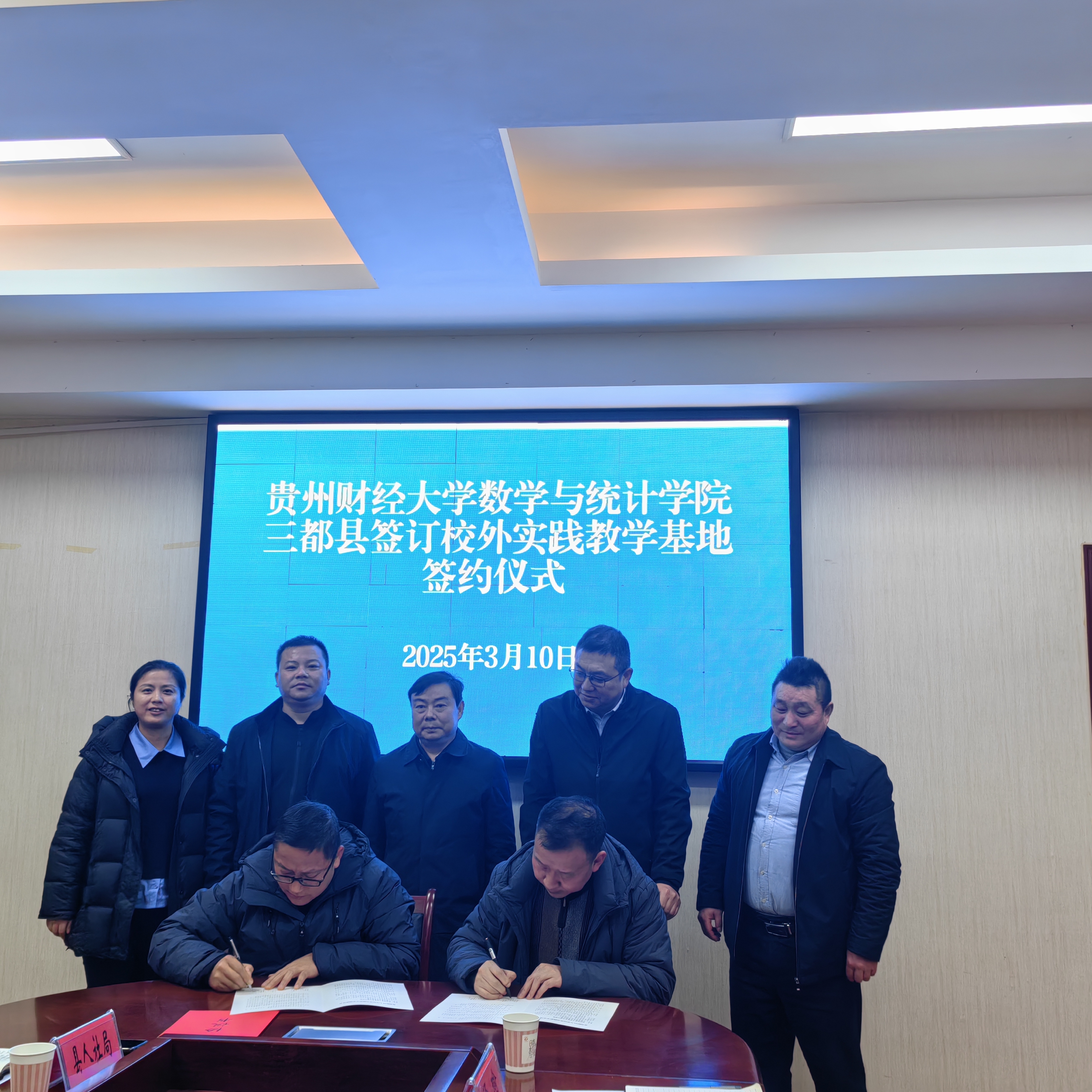 在调研座谈会上,双方就人才培养与就业服务进行了深入交流。冯大河介绍了学院近年来通过优化课程设置、强化实践教学,培养出了一批“懂经管、精专业、强建模”的复合型人才。王晓敏表示,三都县高度重视老员工就业工作,在吸引高素质人才方面采取了系列举措。学院与三都县统计局、人力资源和社会保障局分别签署了《校外实践教学基地协议书》,计划建立“党建+人才引育”合作机制,在人才培养方面开展深度合作,为构建新型人才培养机制达成了初步共识。与三都县的合作计划包括通过实习基地共建、定向招生宣传等措施,吸引更多的毕业生投身基层。