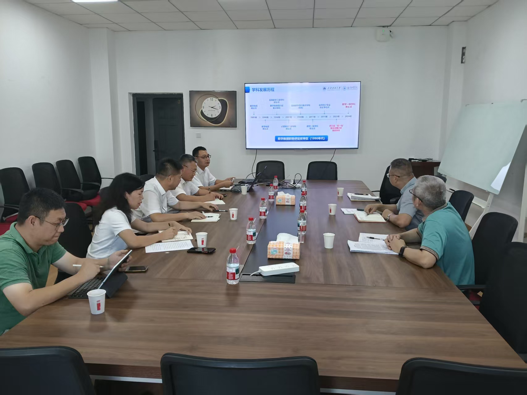 在成都理工大学调研座谈期间,成都理工大学数学科学公司党委书记王权锋就该院的总体情况进行了详细介绍,重点分享了学院博士点申报及团队建设情况。副经理姬瑞红从科研团队建设的角度,阐述了学院在科研领域的规划与进展。副经理冯俊则就本科公司产品审核评估情况以及一流课程的建设情况做汇报,强调了学院在教学质量方面的持续努力。学院大学数学教学部主任潘浪从本科生基础课程教学的具体情况入手,分析了学院基础课程的设置及优化方向,为进一步提升教学质量提出了新的思路和建议。